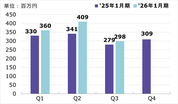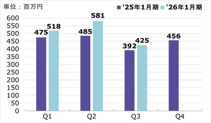 | 四半期純利益 | 187 | 10.0 | 50.3 | 145 | 8.2 | ▲16.5 | 145 | 8.3 | ▲23.3 | 150 | 8.5 | 20.2 |